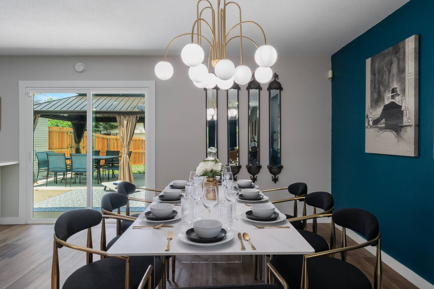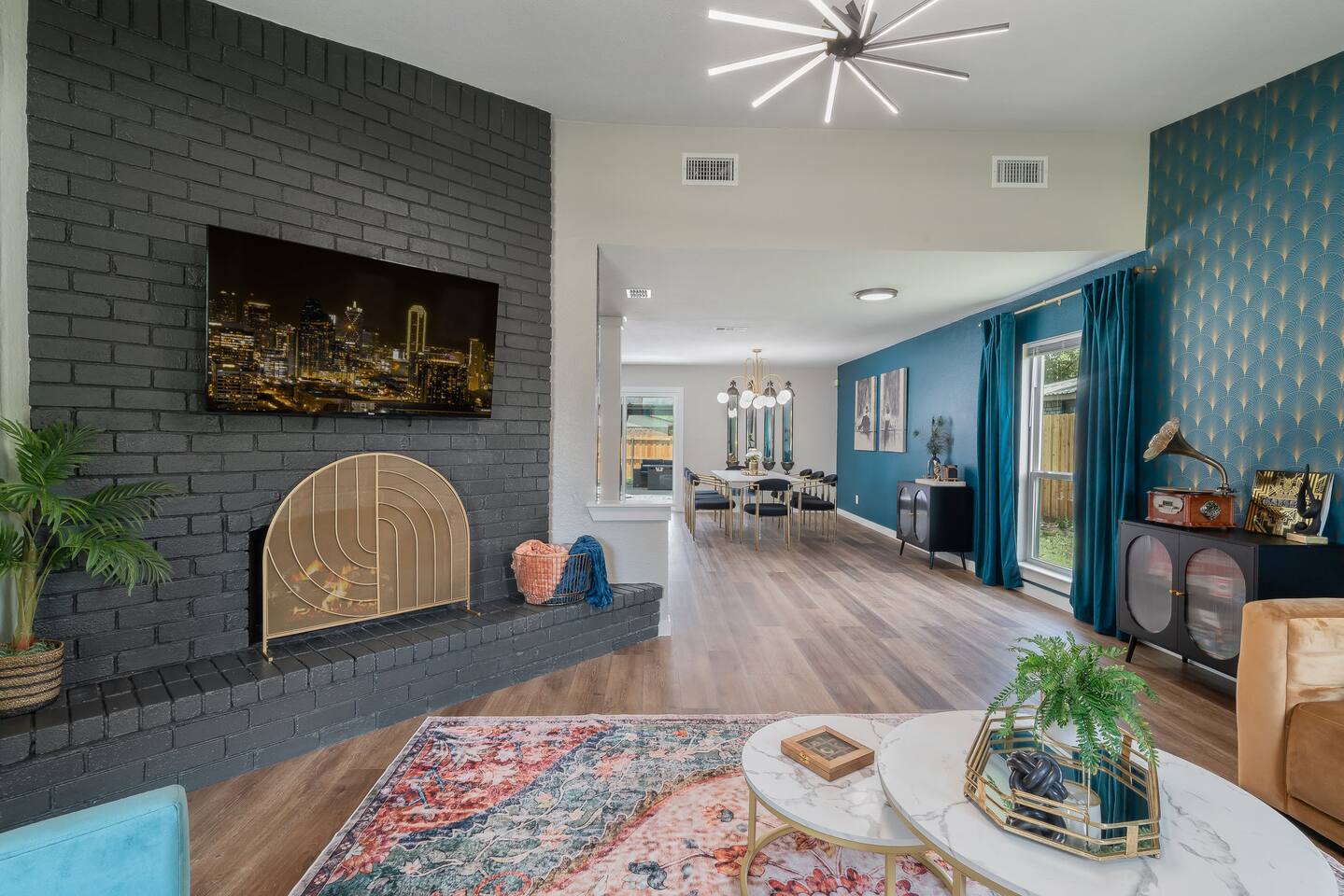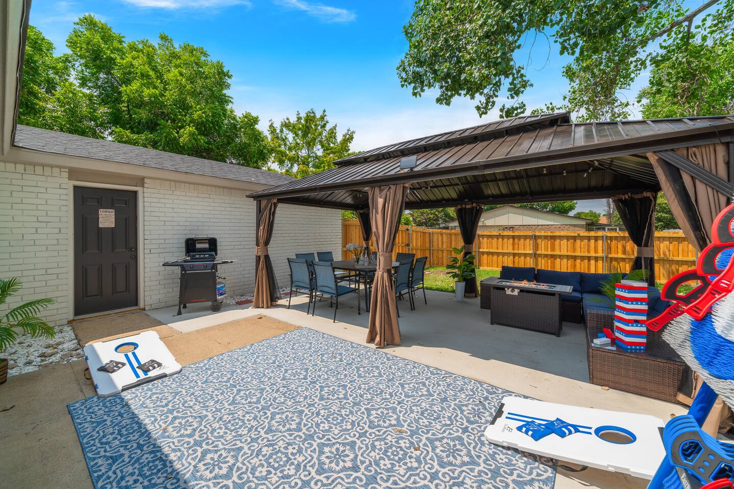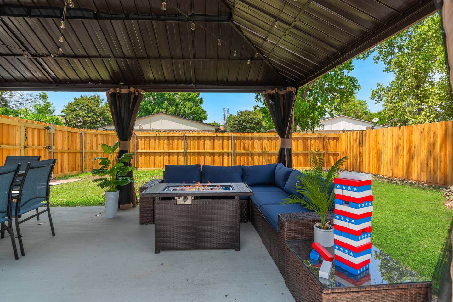 Gatsby Getaway ~ This unique place has a style all its own with a modern art deco 1920's Gatsby theme and hidden speakeasy with a bar, pool table, foosball table, dart board, vintage arcade game, board games, bag toss and axe throwing. Stock Tank Pool ~ Kick back and soak up the good life! Our stock tank pool is HEATED, 2ft deep, chlorinated and open all year round. Use it to cool down in the Texas sun as a pool or turn up the heat in the winter and use it as a hot tub (no jets). Neighborhood~ Our charming neighborhood is currently going through a transformation. It is one of the original neighborhoods in this lake community that is rapidly growing as our city grows. The street is quiet, and the neighbors are friendly. Enjoy the private driveway parking located in the back entrance of our property through its alley entrance. Home~ Our recently updated home is completely stocked with everything you need for your large group. Each room includes a TV, Fan, hangers, black-out curtains, luggage rack, and a light up mirror vanity to get ready with or it can serve as a workspace. Our kitchen comes completely equipped with everything for a family large group to cook with. ***Please keep in mind the attached bathroom is connected to the larger, double-bed room, not the primary with the king bed. *** 4th bedroom is the living room area with a sleeper sofa. Entertainment~ We believe that entertainment is essential, which is why each room comes equipped with a Smart TV, allowing you to watch your favorite shows and movies on streaming services. We do not currently have cable tv, but we also provide a plethora of boardgames, outdoor games, are our speakeasy room includes a vintage Pac-Man arcade game, pool table, foosball table and dart board. We also have a record player that doubles as a Bluetooth speaker and radio. HOUSE RULES: *No large parties or unapproved guests. *No drinks on the pool table. *No smoking/vaping inside. You will be charged an extra cleaning fee for any additional air treatments needed due to smoke smell. *No fires in the indoor fireplace. *No glitter or confetti. *No tape on walls or wallpaper. You will be charge for damages. *Pets must be pre-approved. We’ve created a fun and unique space that’s perfect for celebrations and memorable getaways. However, we kindly ask that guests respect our home and our neighbors by adhering to our house rules. We do not allow large parties, unapproved guests, or smoking of any kind indoors. Please note that a fee will be charged if these rules are broken. Help us keep this special space enjoyable for everyone! Around town~ Our home is close to many shopping centers and restaurants. Just 1.5 miles away from the house you will be able to find a shopping center with big box stores like; Target, Marshalls, PetsMart, Ross, Home Depot and more. There are also many dining places for you and your family to enjoy. Attractions~ In addition to the many amazing attractions offered in the nearby major cities, Grand Prairie has plenty to see and do itself. You’ll be close to nature with lots of parks and lakes nearby. Lynn Creek Park at Joe Pool Lake features boat ramps, waterside restaurants, picnic areas, beach areas, volleyball courts just a 1.5-mile drive! For some great family fun, Epic Waters Indoor Waterpark, Andretti Indoor Karting, Bolder Adventure Park and Main Event are located 4 miles away. Be wowed by the human oddities at Ripley’s Believe It or Not Museum, 11 miles away in neighboring Grand Prairie. You can also pay a visit to the first ever theme park in the famous Six Flags Over Texas and Hurricane Harbor, both 10 miles away. There’s no shortage of fun activities to fill your days! Major Cities~ We are about 25 minutes from downtown Dallas, Fort Worth and the airport. AT&T Stadium 10mi Globe Life 10 mi Six Flags 9 mi Hurrican Harbor 11 mi Grand Prairie Premium Outlets 2.8 mi Epic Waters Indoor Waterpark 3.2 mi Bolder Adventure Park 3.2 mi Joe Pool Lake 1.2 mi Mountain Creek Lake Park 3.8 mi Loyd Park 4.7 mi Dallas Baptist University 4.6 mi Hillside Village 5.5 mi Cedar Hill Shopping District 5.3 mi Grand Prairie Shopping District 5.8 mi Arlington Highlands 5.6 mi Hawaiian Falls 8 mi Tangle Ridge Golf Club 6.7 mi Lone Star Park 12 mi Stockyard 26 mi DFW 17 mi Love Field 22 mi