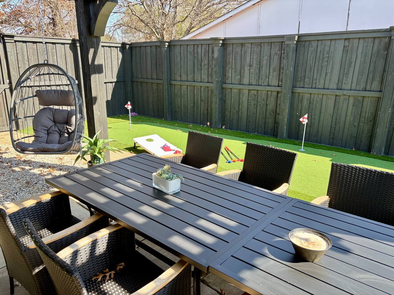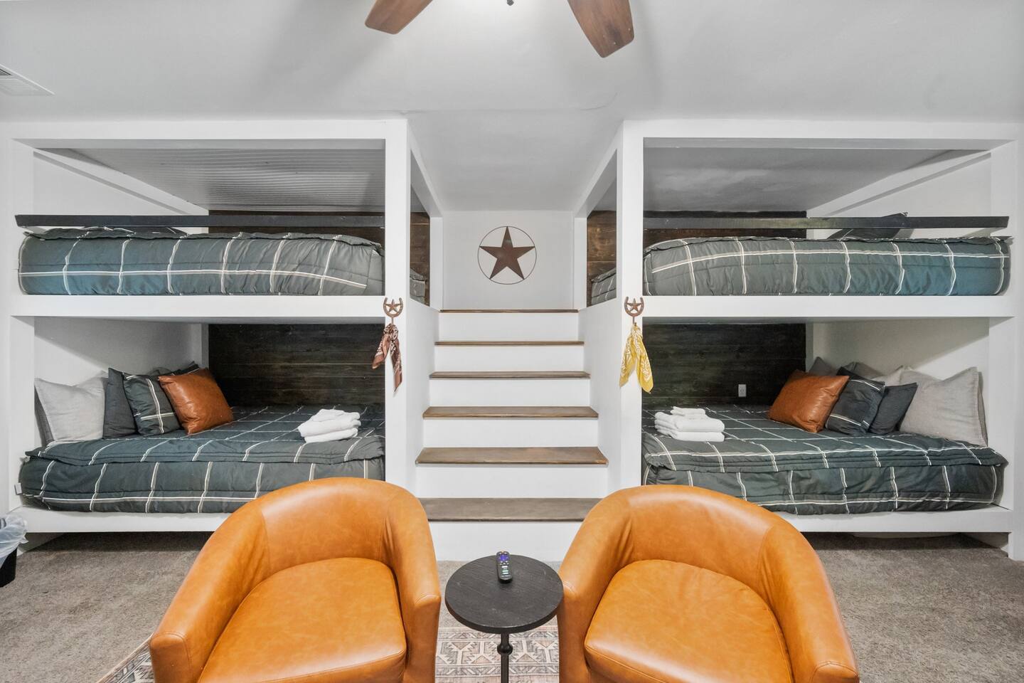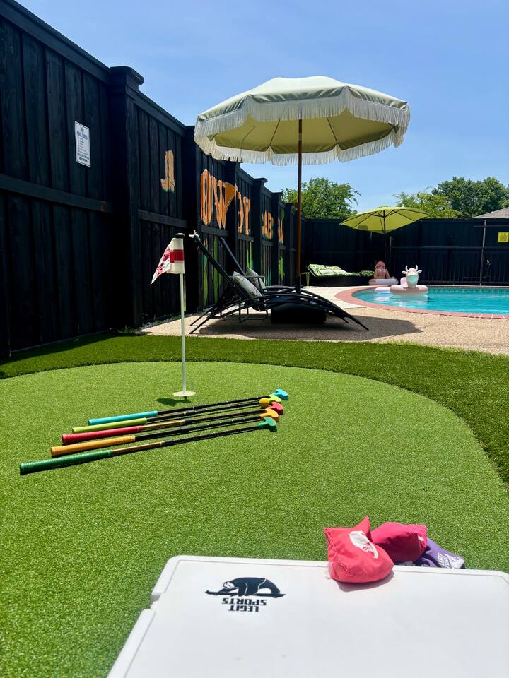 Neighborhood~ Our charming neighborhood is currently going through a transformation. It is one of the original neighborhoods in this lake community that is rapidly growing as our city grows. The street is quiet, and the neighbors are friendly. Enjoy the safety and privacy of our gated entrance and fenced-in parking located in the back entrance of our property through its alley entrance. Home~ Our recently updated home is completely stocked with everything you need for your large group. Each room includes a TV, Fan, hangers, black-out curtains, luggage rack, and a light up mirror vanity to get ready with or it can serve as a workspace. Our kitchen comes completely equipped with everything for a family large group to cook with. Children~ For young families, we have everything you need at the home. For no additional charge, the home comes with a standard full-sized crib with mattress and fitted sheet only, baby monitor, sound machine, black-out curtains and highchair. As a family of five, we know how helpful it is to have these items provided. Please feel free to ask for any special requests. Entertainment~ We believe that entertainment is essential, which is why each room comes equipped with a Smart TV, allowing you to watch your favorite shows and movies on streaming services. We do not currently have cable tv, but we also provide a plethora of boardgames, video games and outdoor games. We also have a large portable speaker and projector for outdoor movies. Pool~ NOT heated Rules~ *No large parties or unapproved guests. *Swim at your own risk. Do not leave children unattended by the pool. We are not responsible for any injuries or accidents. *No smoking/vaping inside. You will be charged an extra cleaning fee for any additional air treatments needed due to smoke smell. *No small children on the top bunks. *No fires in the indoor fireplace. *No glitter or confetti. *No tape on walls or wallpaper. You will be charge for damages. *No glass by the pool. *Pets must be pre-approved. *We’ve created a fun and unique space that’s perfect for celebrations and memorable getaways. However, we kindly ask that guests respect our home and our neighbors by adhering to our house rules. We do not allow large parties, unapproved guests, or smoking of any kind indoors. Please note that a fee will be charged if these rules are broken. Help us keep this special space enjoyable for everyone! Around town~ Our home is close to many shopping centers and restaurants. Just 1.5 miles away from the house you will be able to find a shopping center with big box stores like; Target, Marshals, Petsmart, Ross, Home Depot and more. There are also many dining places for you and your family to enjoy. Attractions~ In addition to the many amazing attractions offered in the nearby major cities, Grand Prairie has plenty to see and do itself. You’ll be close to nature with lots of parks and lakes nearby. Lynn Creek Park at Joe Pool Lake features boat ramps, waterside restaurants, picnic areas, beach areas, volleyball courts just a 1.5 mile drive! For some great family fun, Epic Waters Indoor Waterpark, Andretti Indoor Karting, Bolder Adventure Park and Main Event are located 4 miles away. Be wowed by the human oddities at Ripley’s Believe It or Not Museum, 11 miles away in neighboring Grand Prairie. You can also pay a visit to the first ever theme park in the famous Six Flags Over Texas and Hurricane Harbor, both 10 miles away. There’s no shortage of fun activities to fill your days! Major Cities~ We are about 25 minutes from downtown Dallas, Fort Worth and the airport. AT&T Stadium 10mi Globe Life 10 mi Six Flags 9 mi Hurrican Harbor 11 mi Grand Prairie Premium Outlets 2.8 mi Epic Waters Indoor Waterpark 3.2 mi Bolder Adventure Park 3.2 mi Joe Pool Lake 1.2 mi Mountain Creek Lake Park 3.8 mi Loyd Park 4.7 mi Dallas Baptist University 4.6 mi Hillside Village 5.5 mi Cedar Hill Shopping District 5.3 mi Grand Prairie Shopping District 5.8 mi Arlington Highlands 5.6 mi Hawaiian Falls 8 mi Tangle Ridge Golf Club 6.7 mi Lone Star Park 12 mi Stockyard 26 mi DFW 17 mi Love Field 22 mi